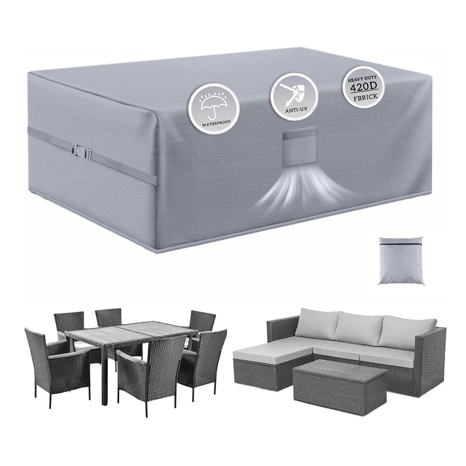 7650 reviews for SIRUITON 150X150X74cm Gray Garden Furniture Covers Waterproof with Air Vent, Heavy Duty 420D Oxford Fabric, Garden Table Cover Waterproof, Outdoor Rattan Garden Furniture…