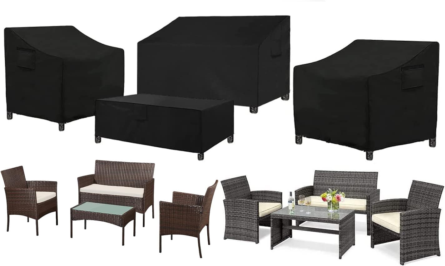 SIRUITON 420D Outdoor Furniture Cover 4-Piece Set, Heavy Duty Patio Furniture Covers, Outdoor Veranda Patio Garden Furniture Set, Waterproof Outdoor Bench Cover, Table Cover,…