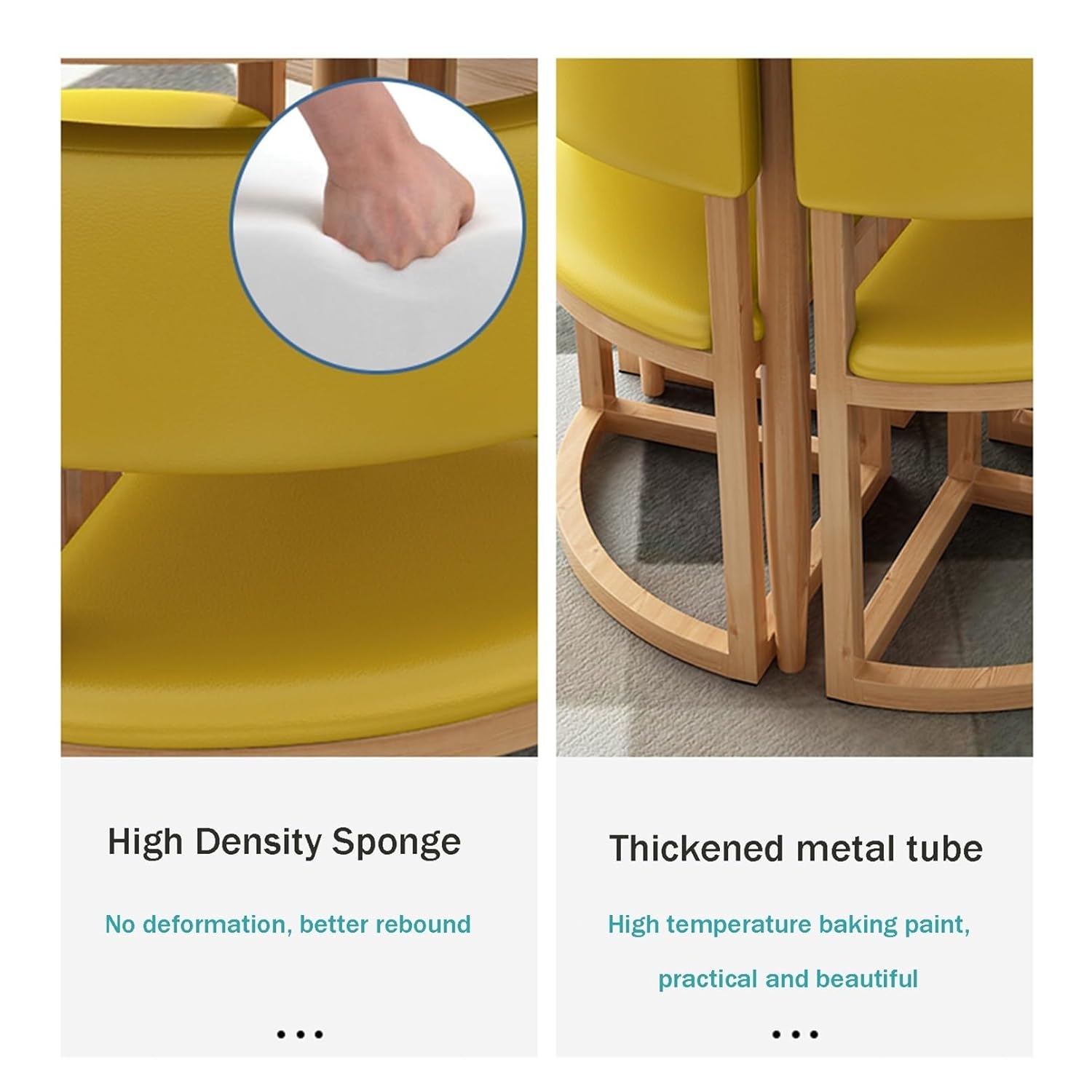 - â–· SPACE-SAVING TABLE SET – 4 chairs can be conveniently tucked under the standard height table for space-saving storage, this table set great solution for small spaces, office, small condos, kitchens, studio apartments and more.