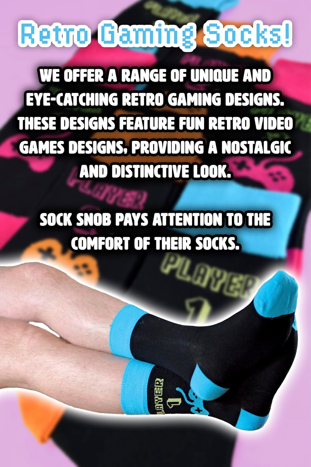 Sock Snob Mens Retro Gaming Funky Novelty Video Game Socks 6-11 | 3 Pairs