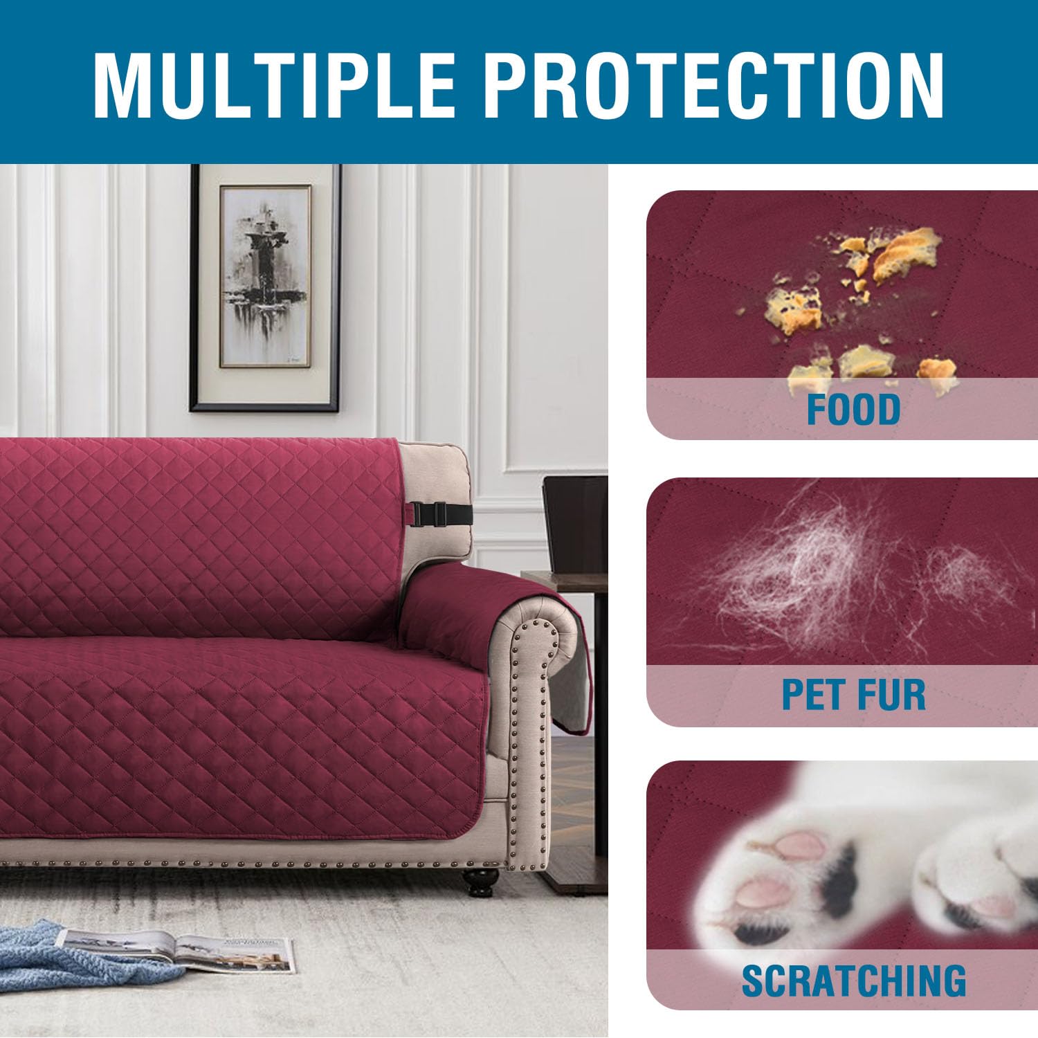 - STYLISH DECOR: Versatile furniture cover is fully reversible, both side feature a microfiber fabric with a beautiful diamond quilt, fill with soft quilted, help retain your pet’s body heat. Keeping your family and pet comfy while also protecting your furniture from pet dander, dirt or scratches