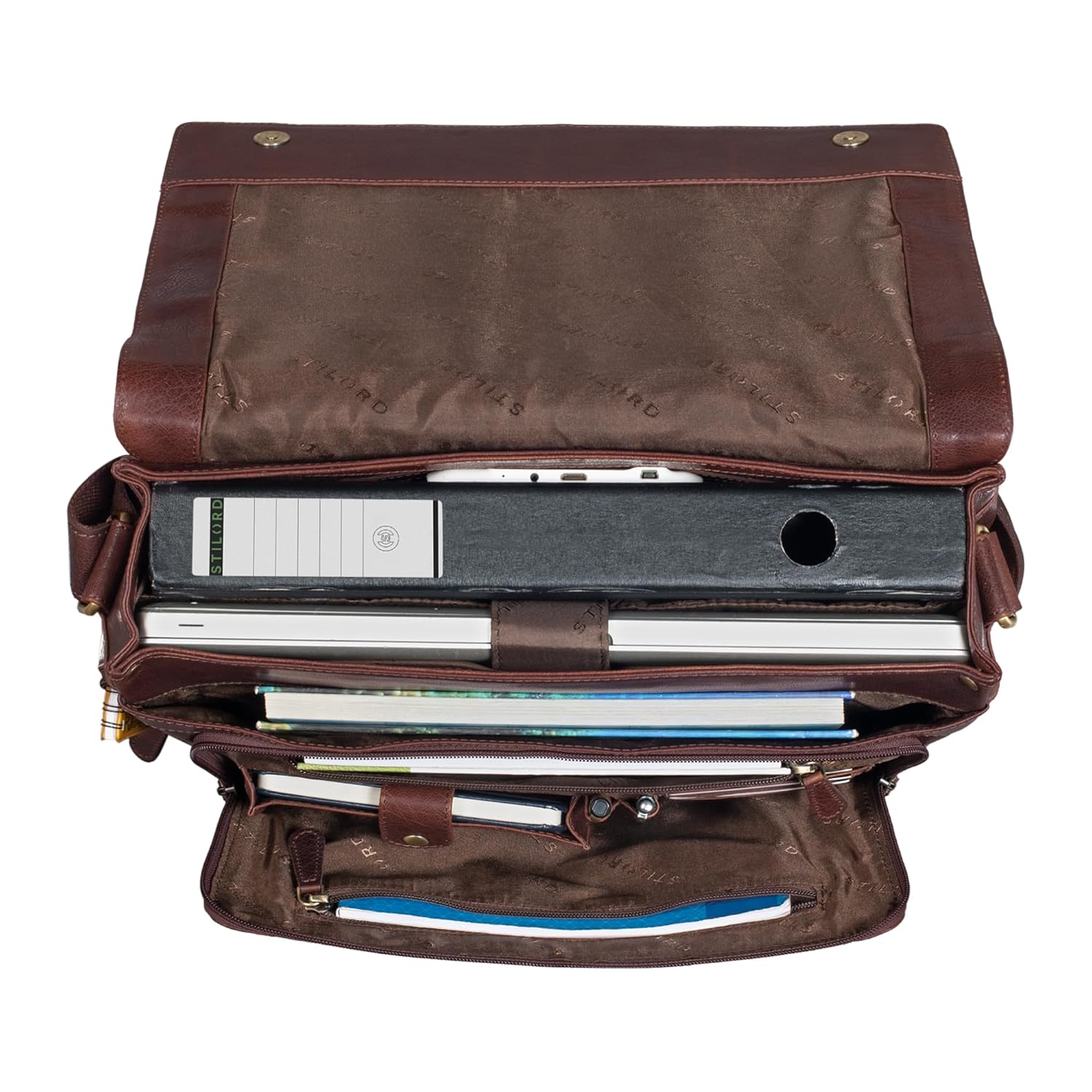 - This leather bag from STILORD offers many storage compartments, stylish appearance, functionality and attractive design for both everyday and professional use