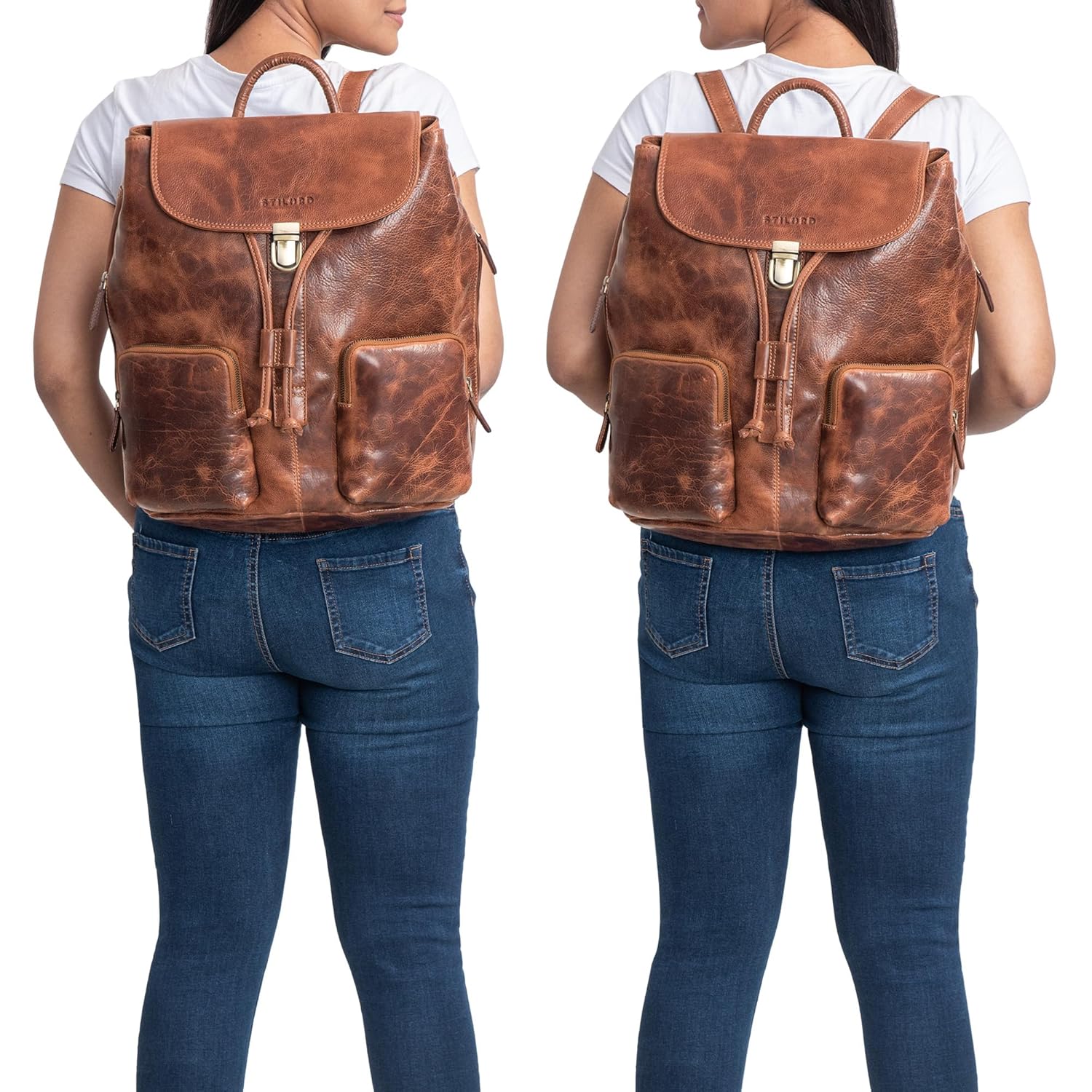 - ‘Sidney’ vintage business backpack genuine leather ladies from German start-up STILORD. ‘Sidney’ is our all-rounder. Especially in lively big cities this daypack backpack feels at home and is therefore always in the middle of the action!