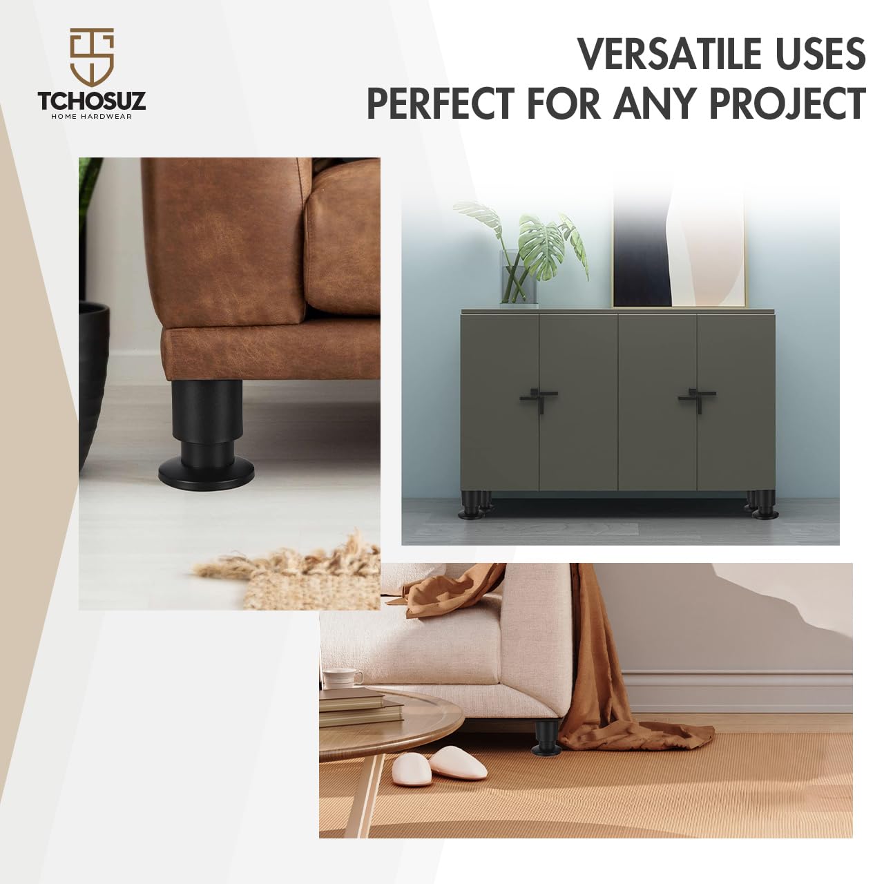 - UPGRADE YOUR FURNITURE – Replace your old furniture legs and update your home’s style to a modern look in minutes. Also raise the height of your furniture and fit for your home DIY project!