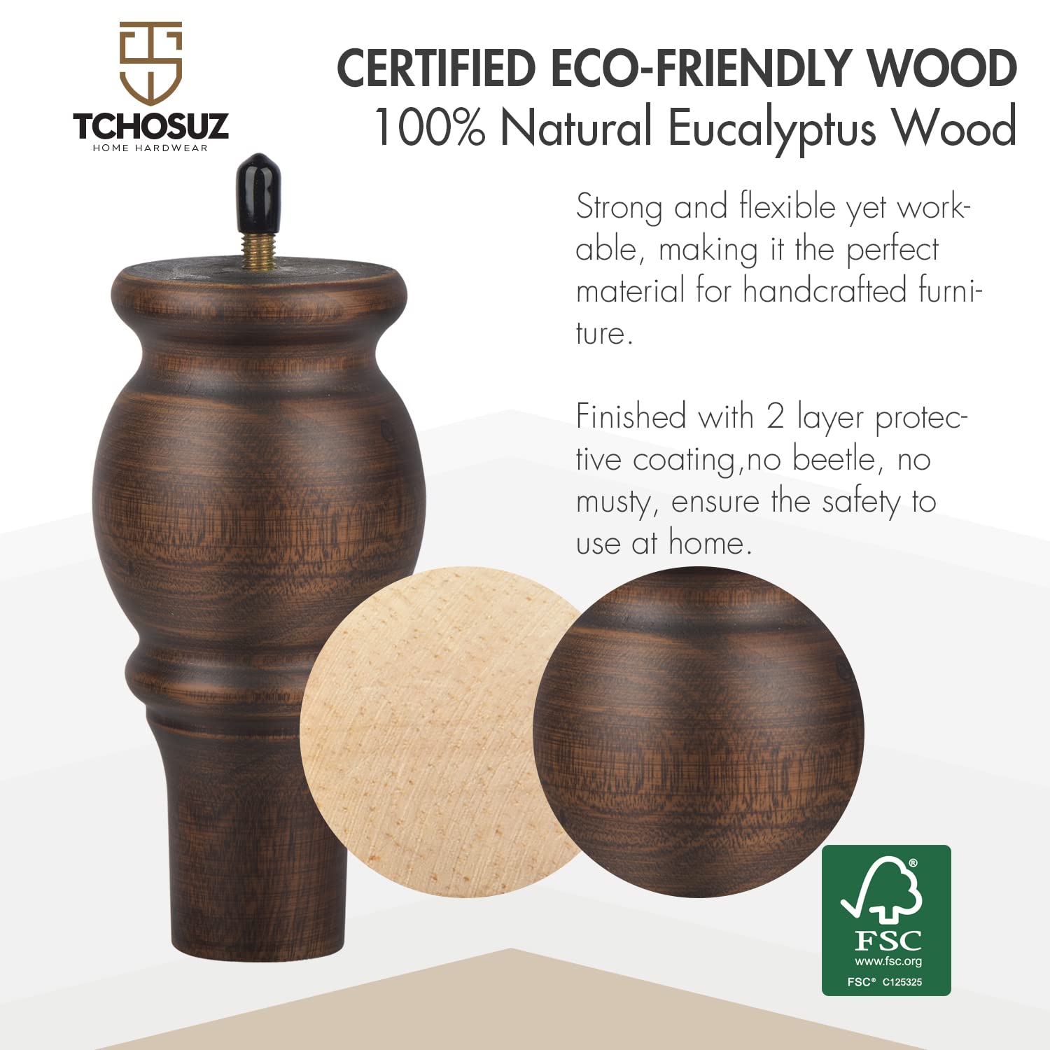 - SOLID WOOD FURNITURE LEGS – Tchosuz Wooden Furniture Legs are made of eco-friendly Eucalyptus, solid wood material makes the product can support more than 400lbs. With its humidity