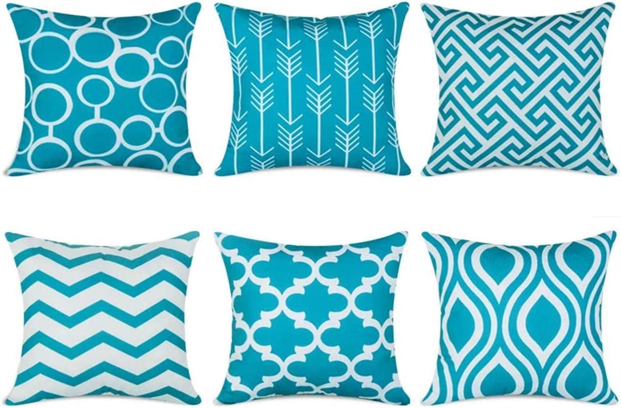 TIDWIACE Set of 6 Teal Cushion Cover 45x45cm Outdoor Furniture Decorative Linen – Throw Pillow case for Home Office Sofa Bedroom Car Garden, Double-sided printing Invisible…