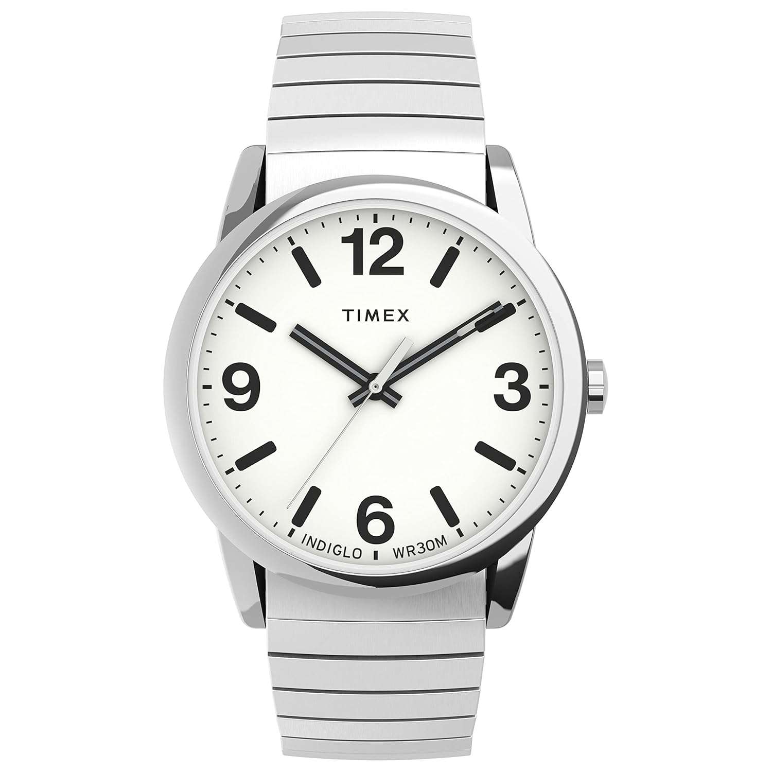 - White easy-to-read dial with bold partial Arabic numerals