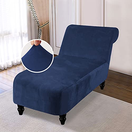 Topchances Velvet Chaise Lounge Cover, Stretch Luxury Armless Chaise Longue Slipcover Pet Furniture Covers Recliner Sofa Slipcovers for Living Room Bedroom Lounge (Navy)