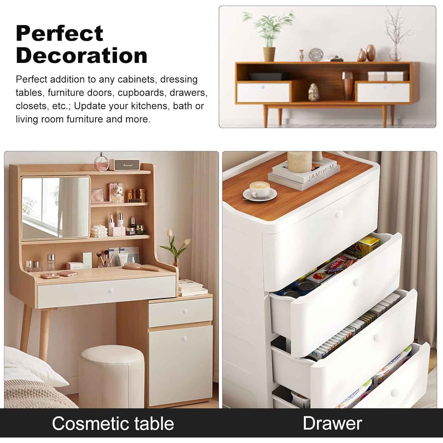 - 【Perfect Decoration】:Perfect addition to any cabinets, dressers, furniture doors, cupboards, drawers, closets, etc.; Update your kitchens, bath or living room furniture and more.
