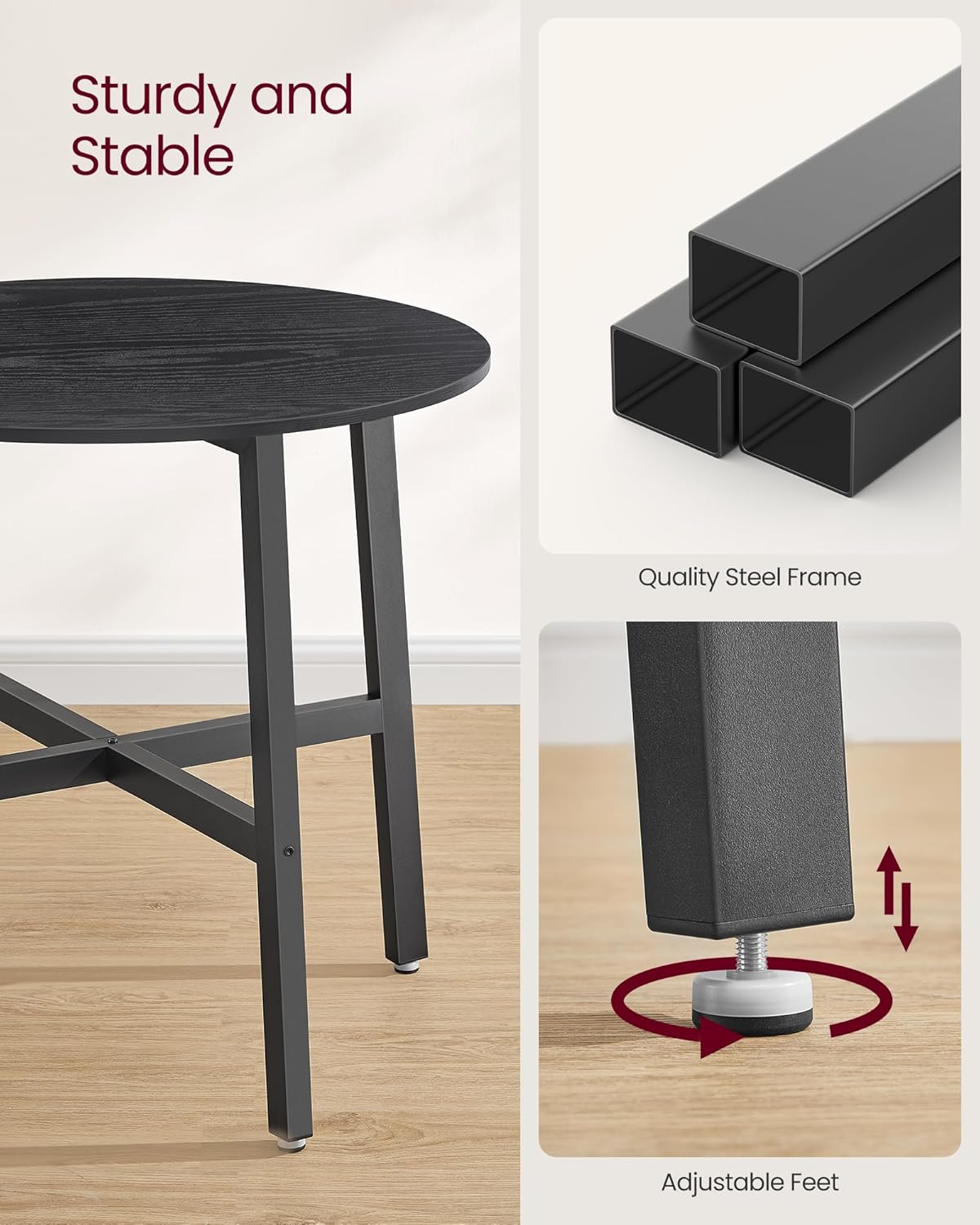 VASAGLE Dining Table, Round Kitchen Table, for Living Room, Office, 80 x 75 cm (Dia. x H), Industrial Style, Ebony Black and Ink Black KDT080B02
