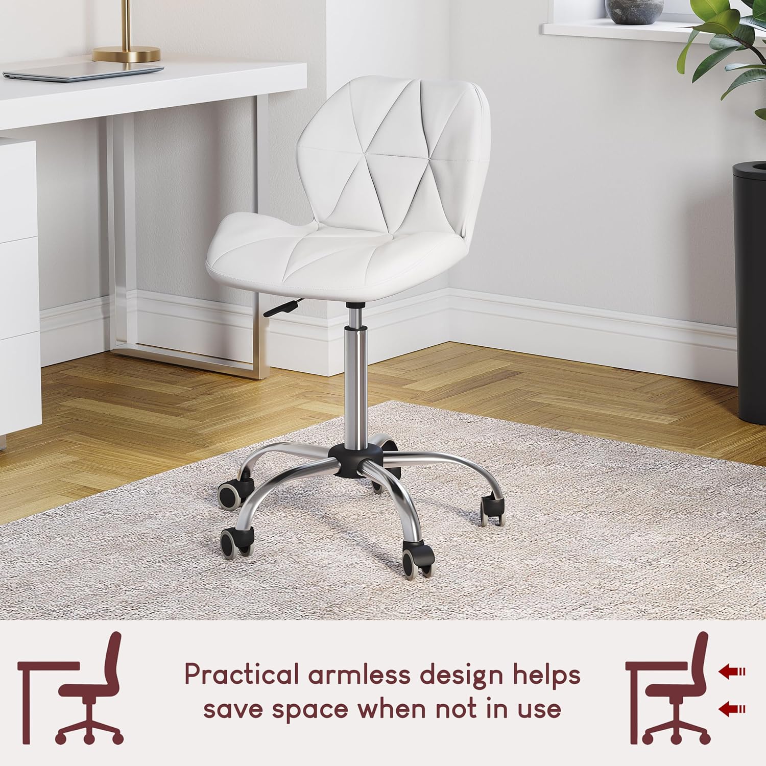 Vida Designs Geo Office Computer Chair, White, Gaming Secretary Adjustable Swivel Legs Lift Chrome Pu Faux-Leather (UKFR Certified)