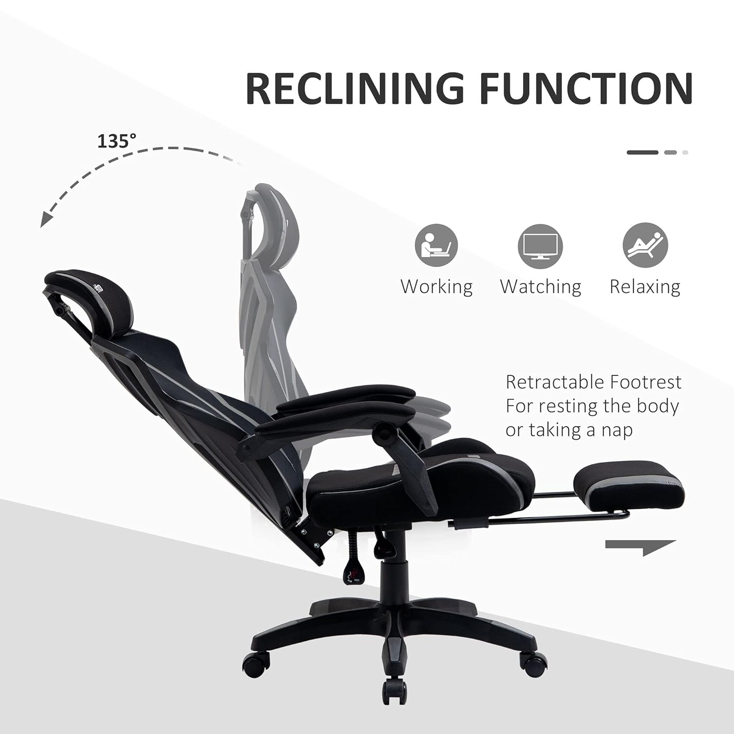 Vinsetto Mesh Office Chair Desk Task Computer Recliner with Footrest, Lumbar Back Support, Swivel Wheels, Adjustable Height for Home, Black Grey
