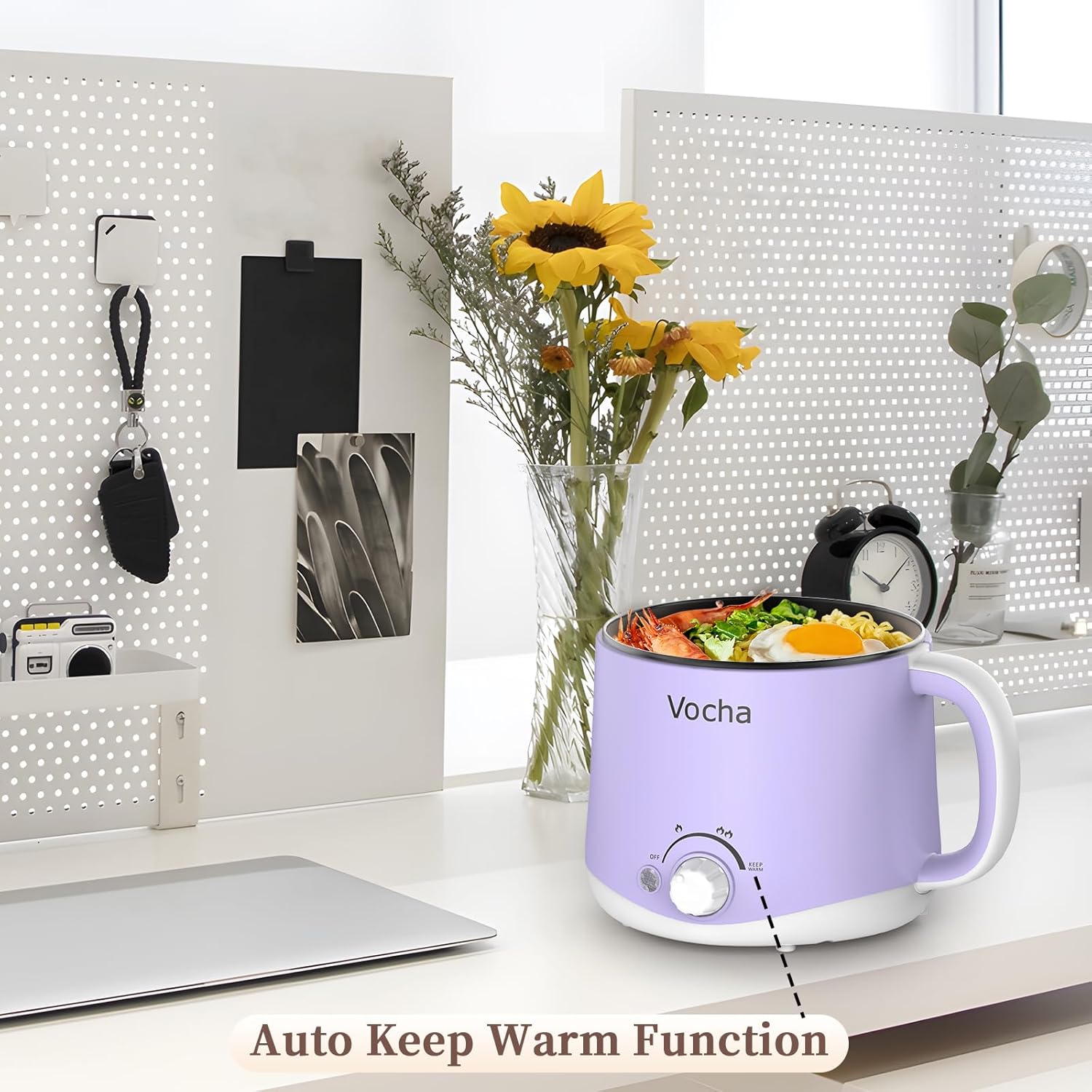 Vocha Electric Hot Pot with Keep Warm Function, 1.6L Rapid Ramen Noodles Mini Travel Cooker, Non-stick Multifunctional Cooker, Perfect for Pasta/Oatmeal/Soup/Dumplings, Stock…