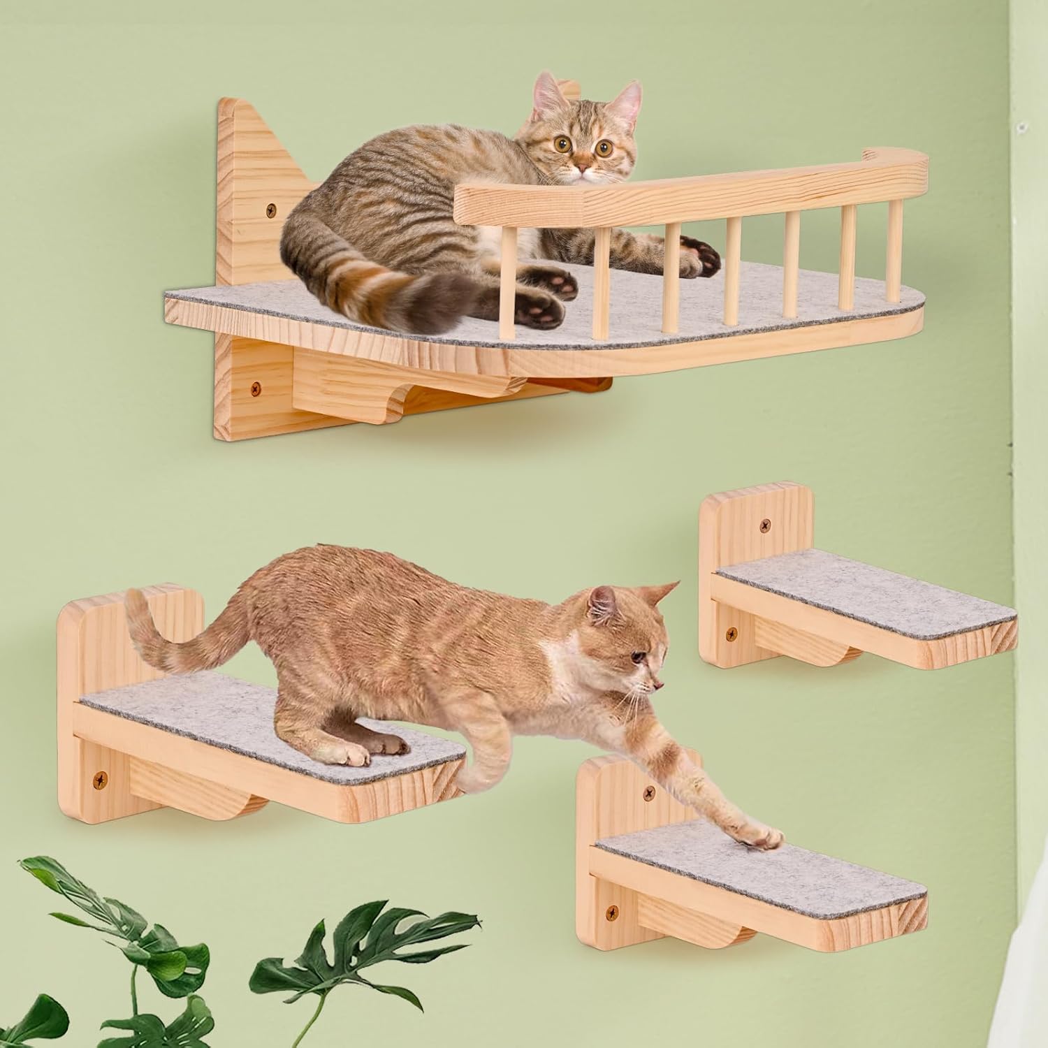 - HIGH QUALITY MATERIAL: Our cat climbing frame is made of high quality solid wood and felt, sturdy and stable. Cats can climb up and down to satisfy their climbing instincts and increase their life interest. Especially suitable for senior cats to improve the quality of life and protect joints. Cats can exercise. Aerial entertainment and space saving.