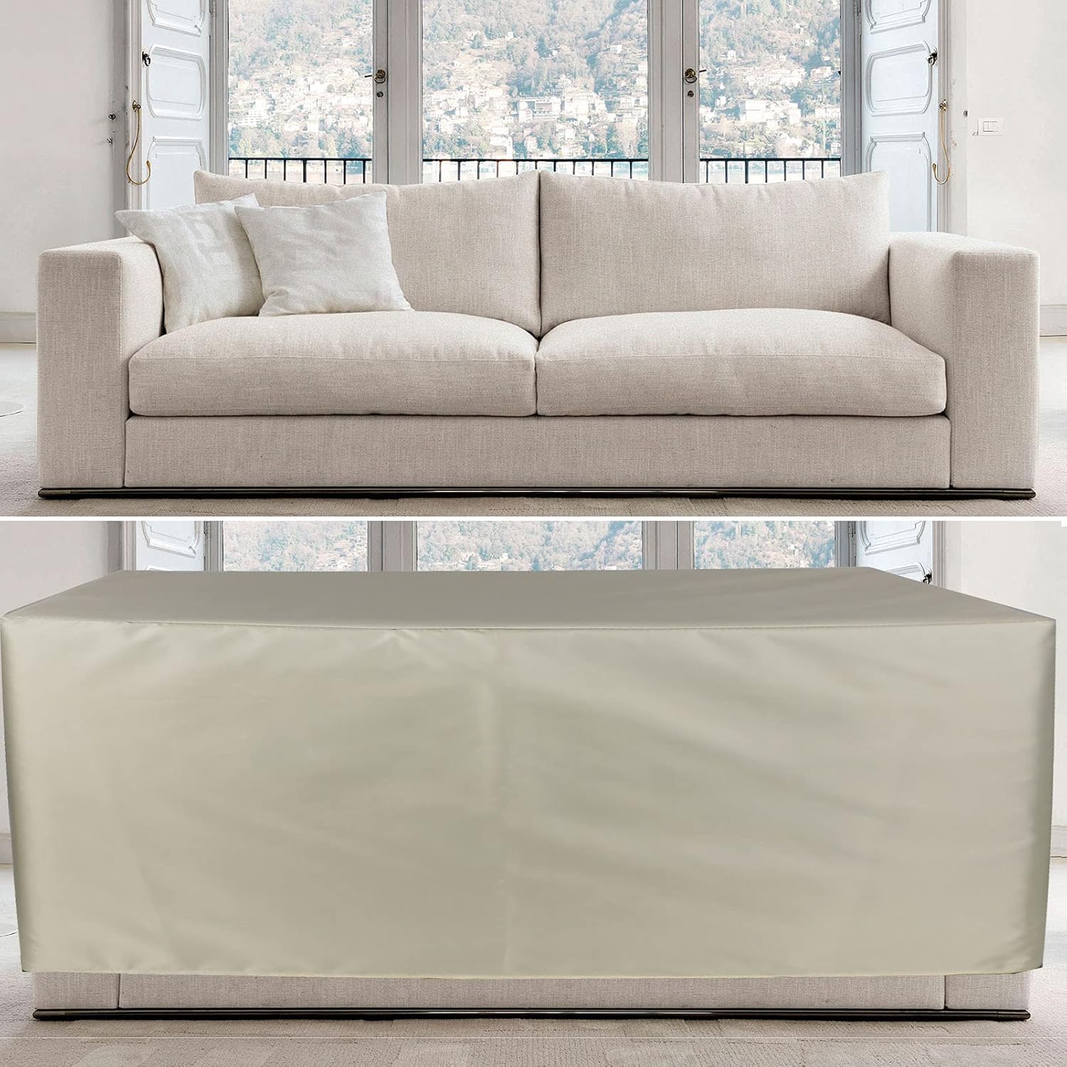 Waterproof Garden Furniture Cover 183x76x72cm Beige Rectangle Patio Table Cover 420D Oxford Fabric Windproof Outdoor Furniture Covers for Sofas and Chairs