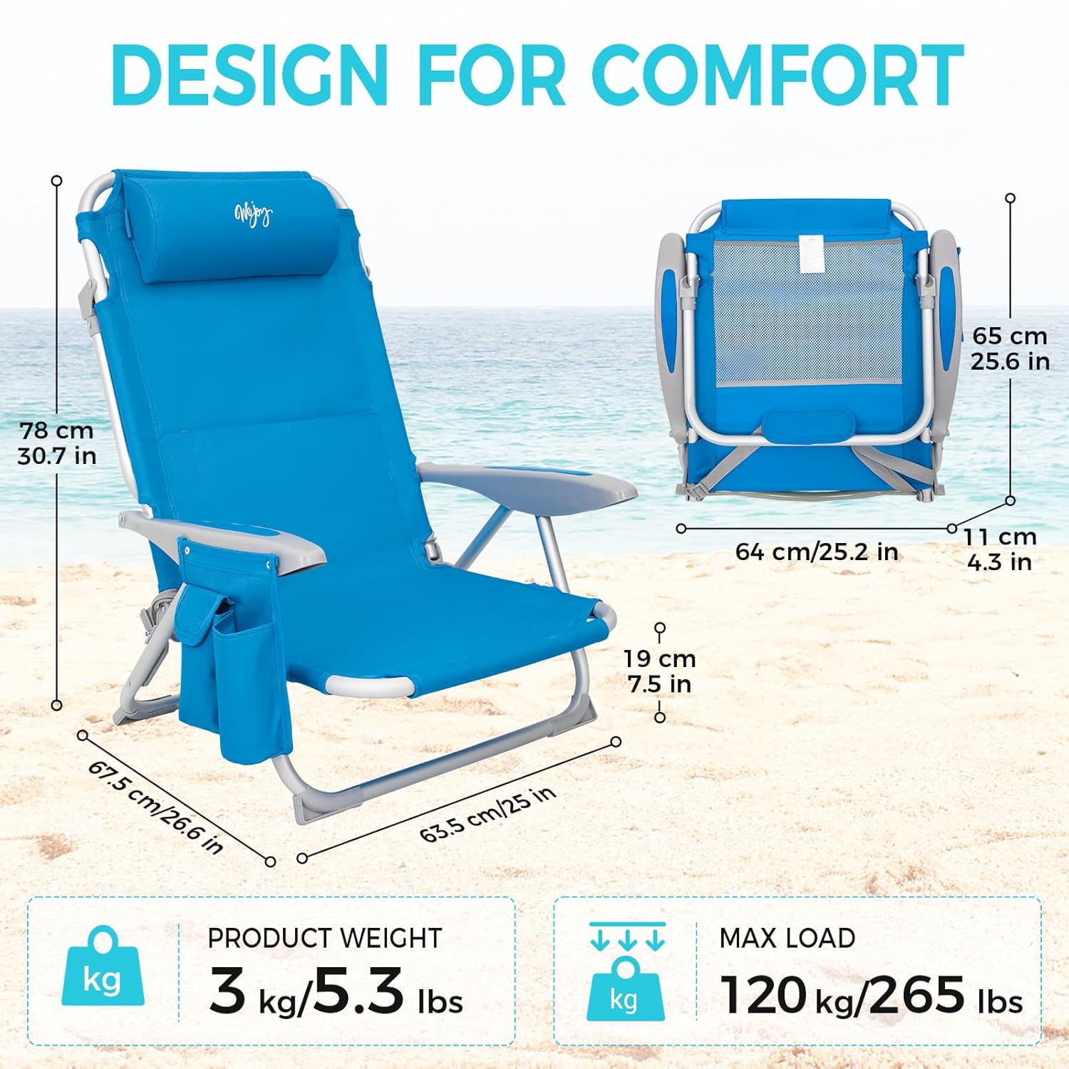 - 【Stable & Durable】#WEJOY camping beach chair character adopts high-quality aluminum alloy frame structure, which has strong bearing capacity, with 600D Oxford fabric which is cooling and breathable, so that this chair can support up to 120 kg/265 lbs. And The surface is treated with anti-oxidation and corrosion-resistant.