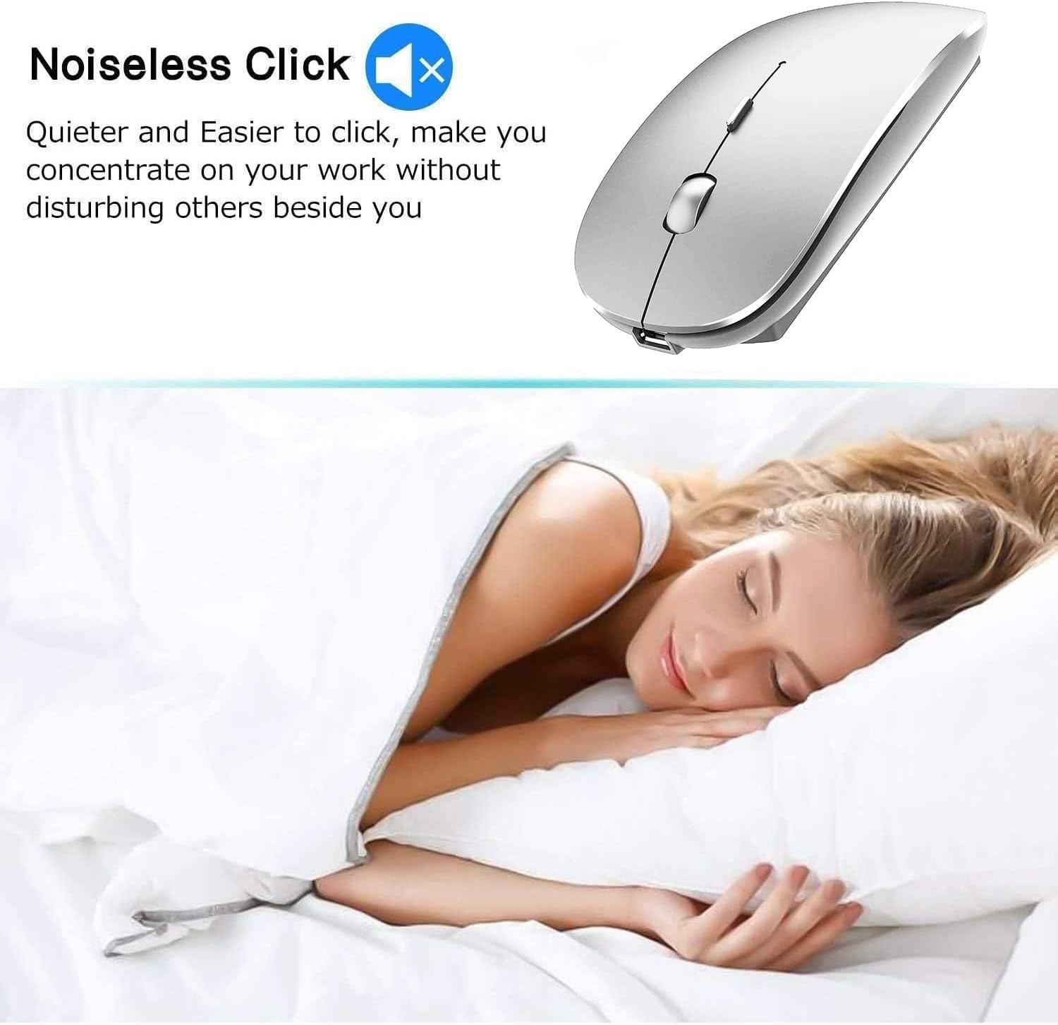 Wireless Bluetooth Mouse for MacBook Pro/Air/Mac/iPad/Laptop/Desktop/Mac/PC/Computer/Phone-Portable Slim Silent Office Mice with USB-C Adapter 2.4 GHz USB Mice (WhiteSilver)