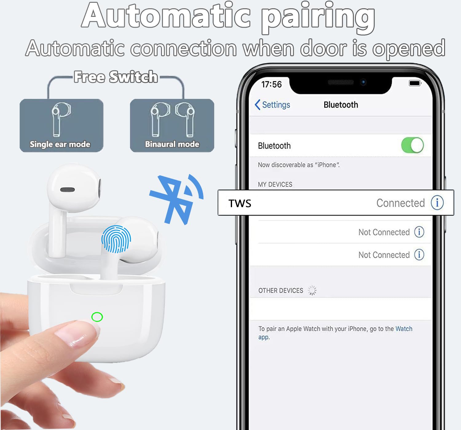 - IP7 Waterproof and Smart Touch Touch Control: Wireless ear buds are waterproof with an IP7 nano-coating, dust and rain proof, allowing you to exercise without fear and easily cope with sweat and rain. Touch intelligent design, touch pressure-free, easy to use. you can control playback, pause, answer calls, adjust volume, and more with simple gestures, making it easy to enjoy music while running, reading, or working.