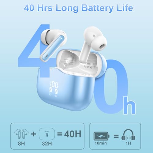 Wireless Earbuds, Bluetooth 5.3 Headphones in Ear with HiFi Stereo Deep Bass, 4 ENC Noise Cancelling Mic Wireless Earphones 40H Playtime, Bluetooth Earbuds Dual LED Display, IP7…