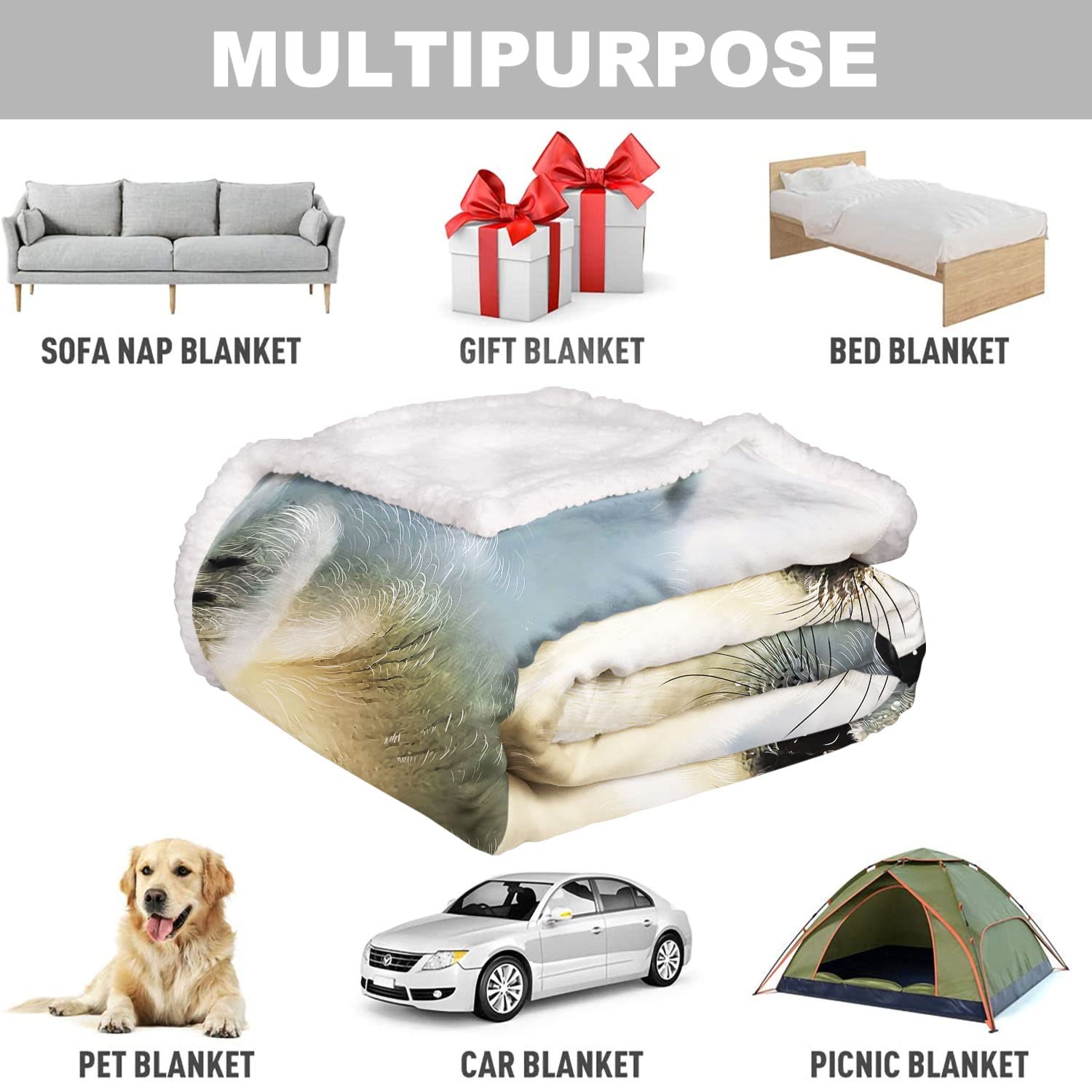 - This cozy blanket measures 50 x 60 inches, which is thick and fuzzy, yet lightweight and portable, great for home or travel, suitable for adults, kids, and pets.