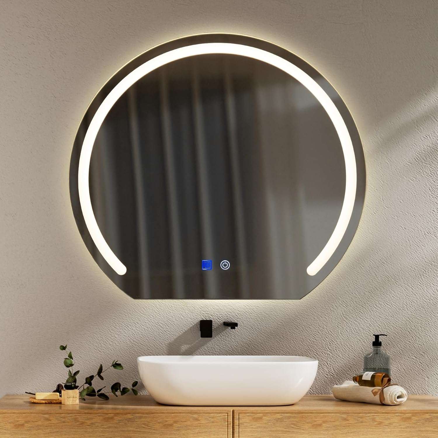 339 reviews for YOSHOOT Btahroom Mirror with LED Lights, 600 mm Makeup Mirror with 3 Colors Lighting Modes, Anti-Fog, Touch Button, Dimmable for Powder Room & Bedroom, Waxing Moon