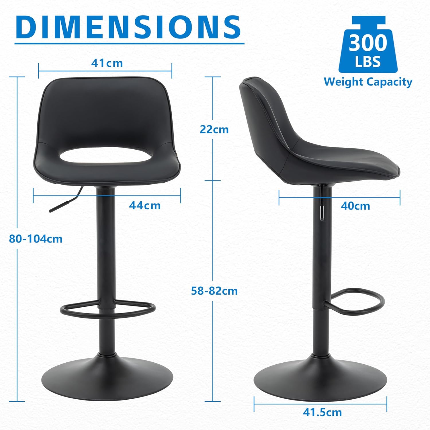 - 【Adjustable & Swivel Function】The bar stool offers a 360° swivel and an adjustable seat height, allowing you to customize your sitting position for maximum comfort. Whether you’re at the kitchen counter or the home bar, you can easily find the perfect height and angle to suit your needs