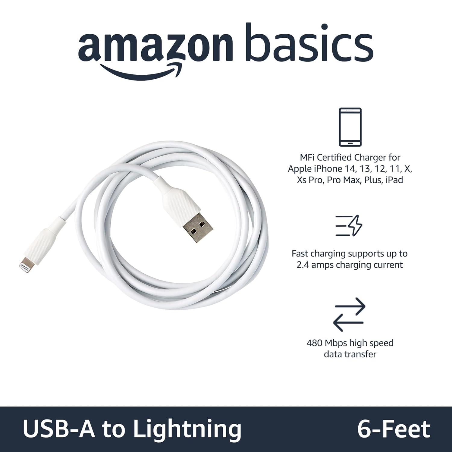 58196 reviews for Amazon Basics USB-A to Lightning ABS Charger Cable, MFi Certified for Apple iPhone 14 13 12 11 X Xs Pro, Pro Max, Plus, iPad, 1.8 m, White