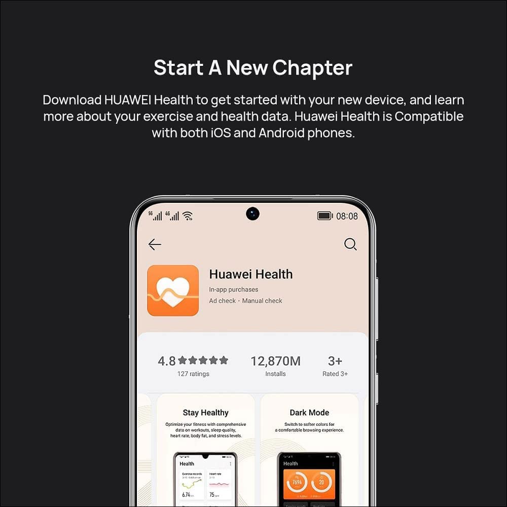 - 【HUAWEI Kirin A1 Self-developed Chip】This new smart watch comes with HUAWEI’s self-developed wearable chip Kirin A1, and intelligent power saving technology to provide up to 2 WEEKS of Battery Life. System requirements: Android 4.4 or later and iOS 9.0 or later