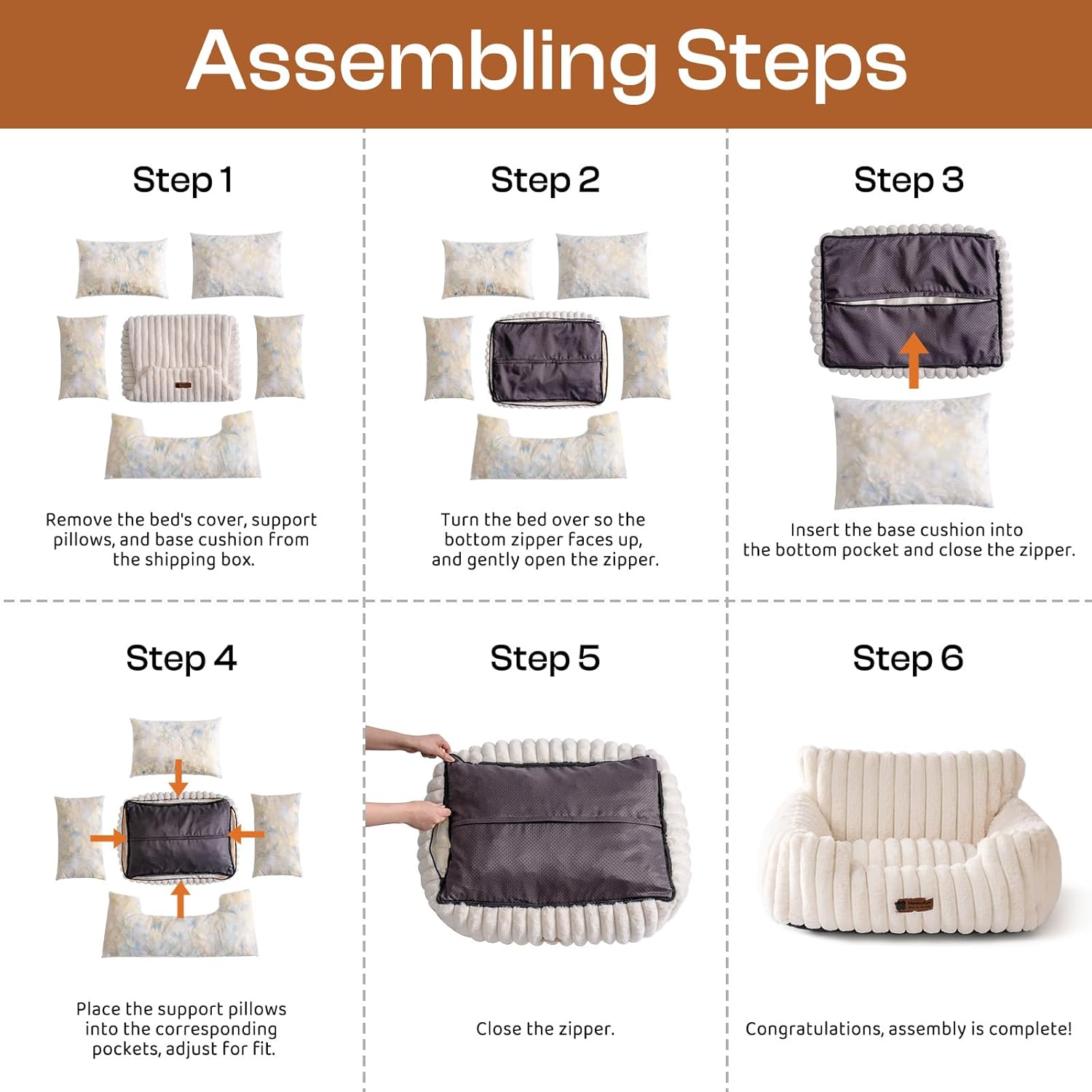 - Superior Support & Security: With a 4-sided bolstered design and elevated backrest, this plush dog sofa provides excellent head and neck support, creating a cozy, nest-like feel. The surround pillows prevents and slipping cradles pets in comfort—ideal for pets who need extra height, while providing anxiety relief