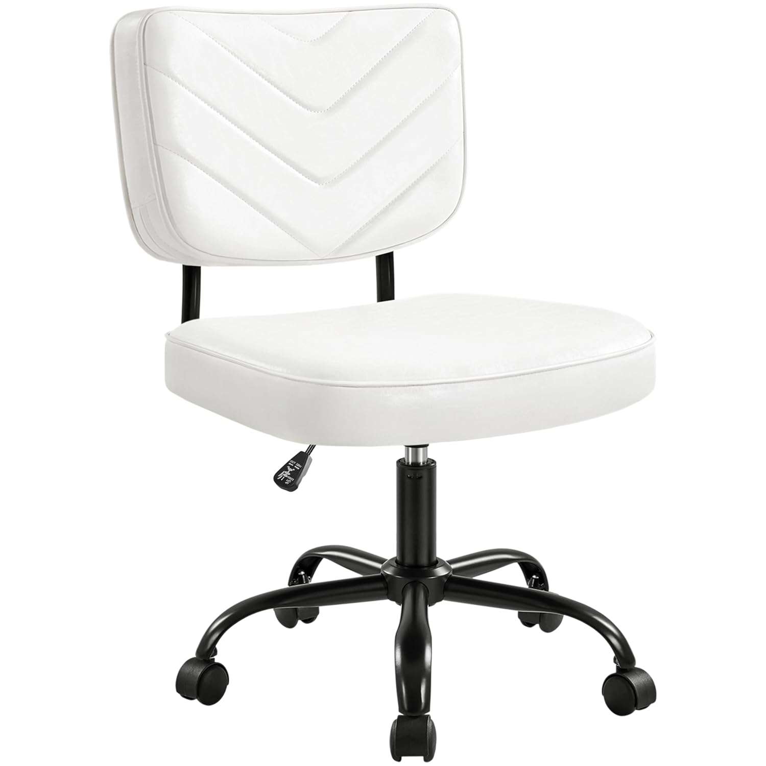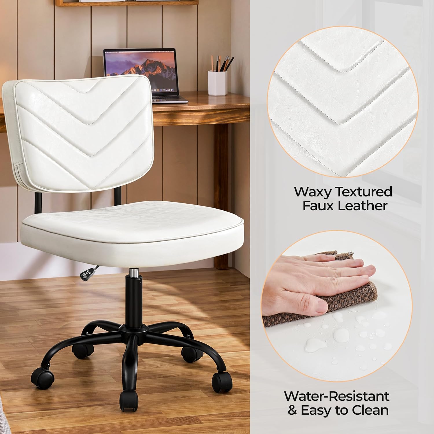 103 reviews for Yaheetech Office Desk Chair with Wheels, Height Adjustable Swivel Vanity Modern Armless Chair with Back Support and PU Leather for Home Bedroom, White